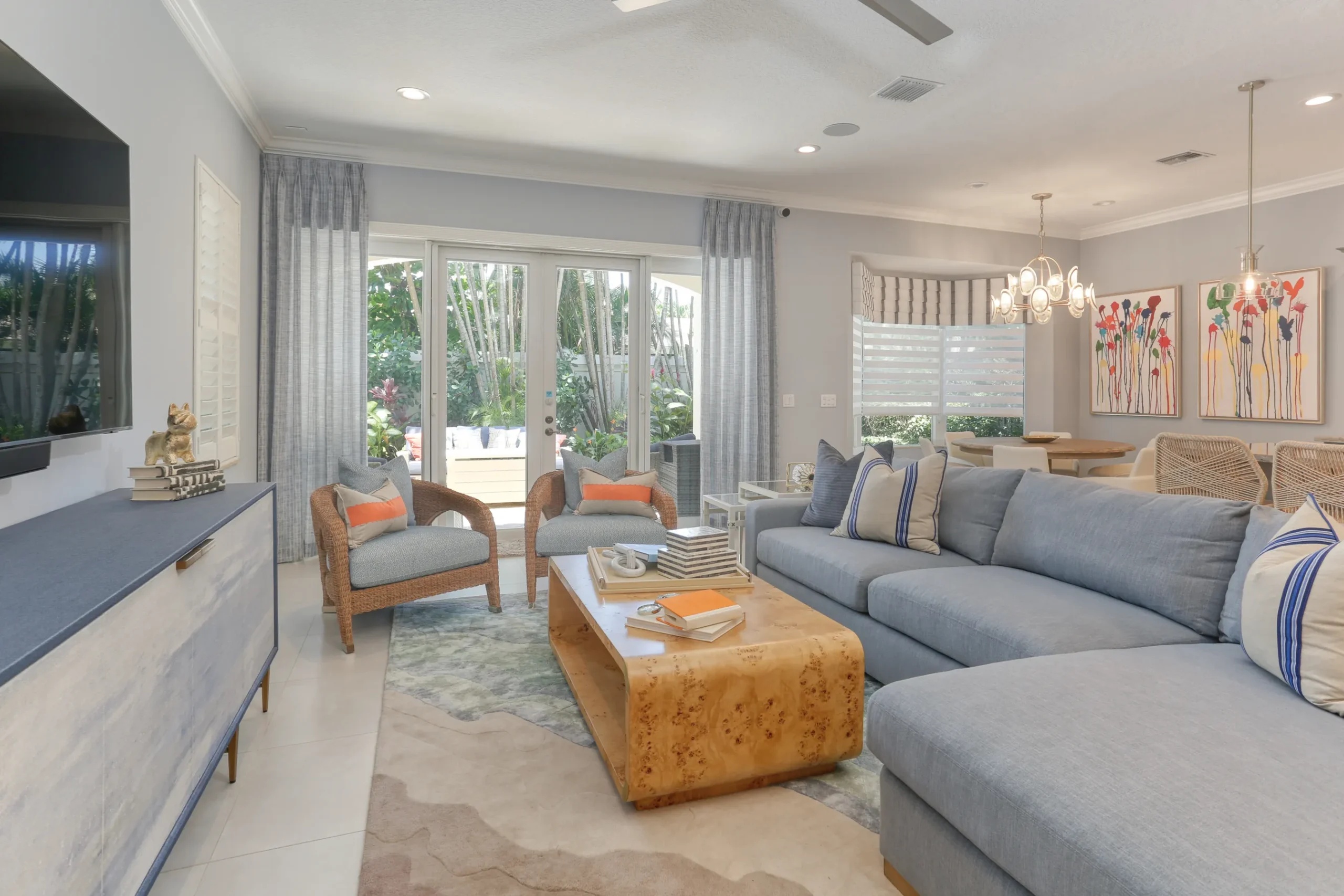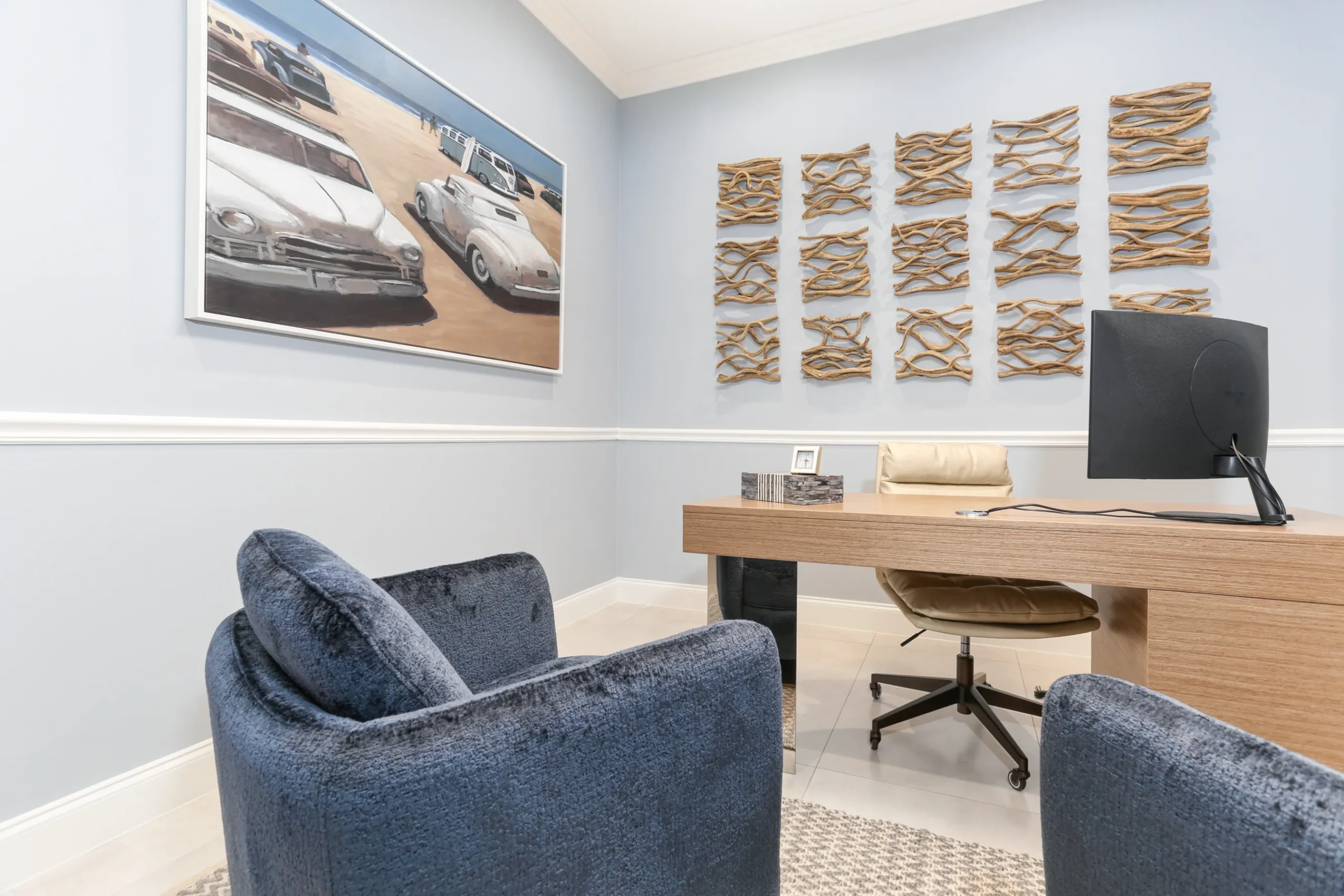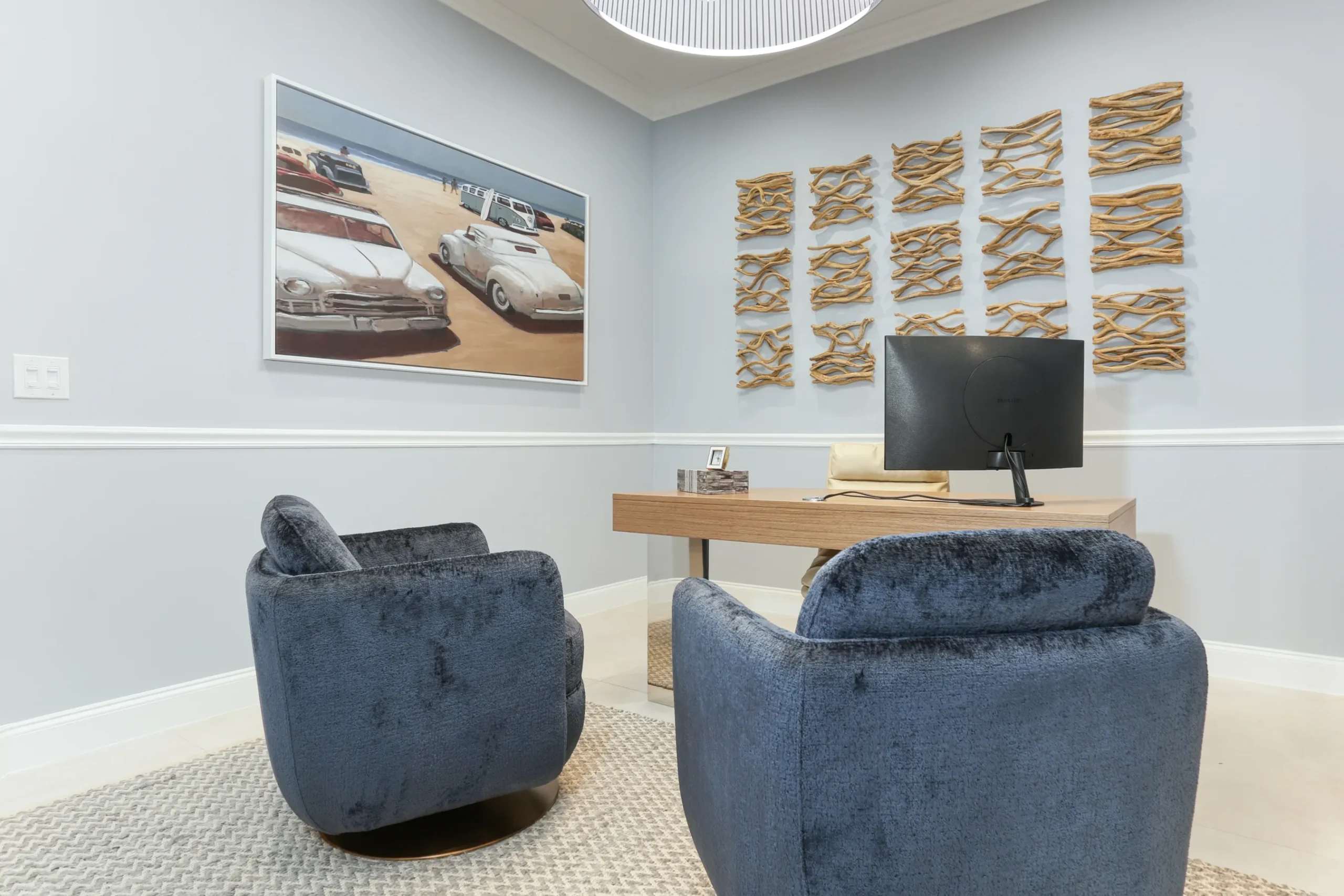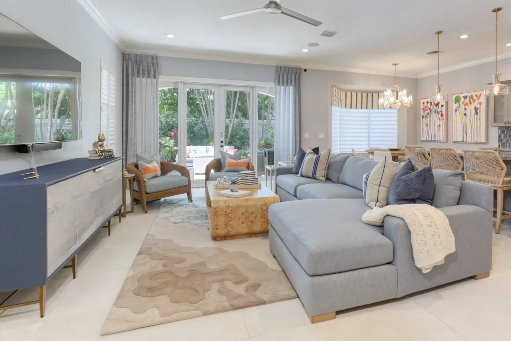 Our Coastal Retreat project blends seaside charm with sophisticated design, evoking the serenity of a true coastalescape. Soft blues, sandy neutrals, and natural textures like rattan and driftwood create harmonious, light-filledspaces. Every detail—from bespoke furnishings to nautical accents—reflects tranquility, elegance, and timelesscoastal living.