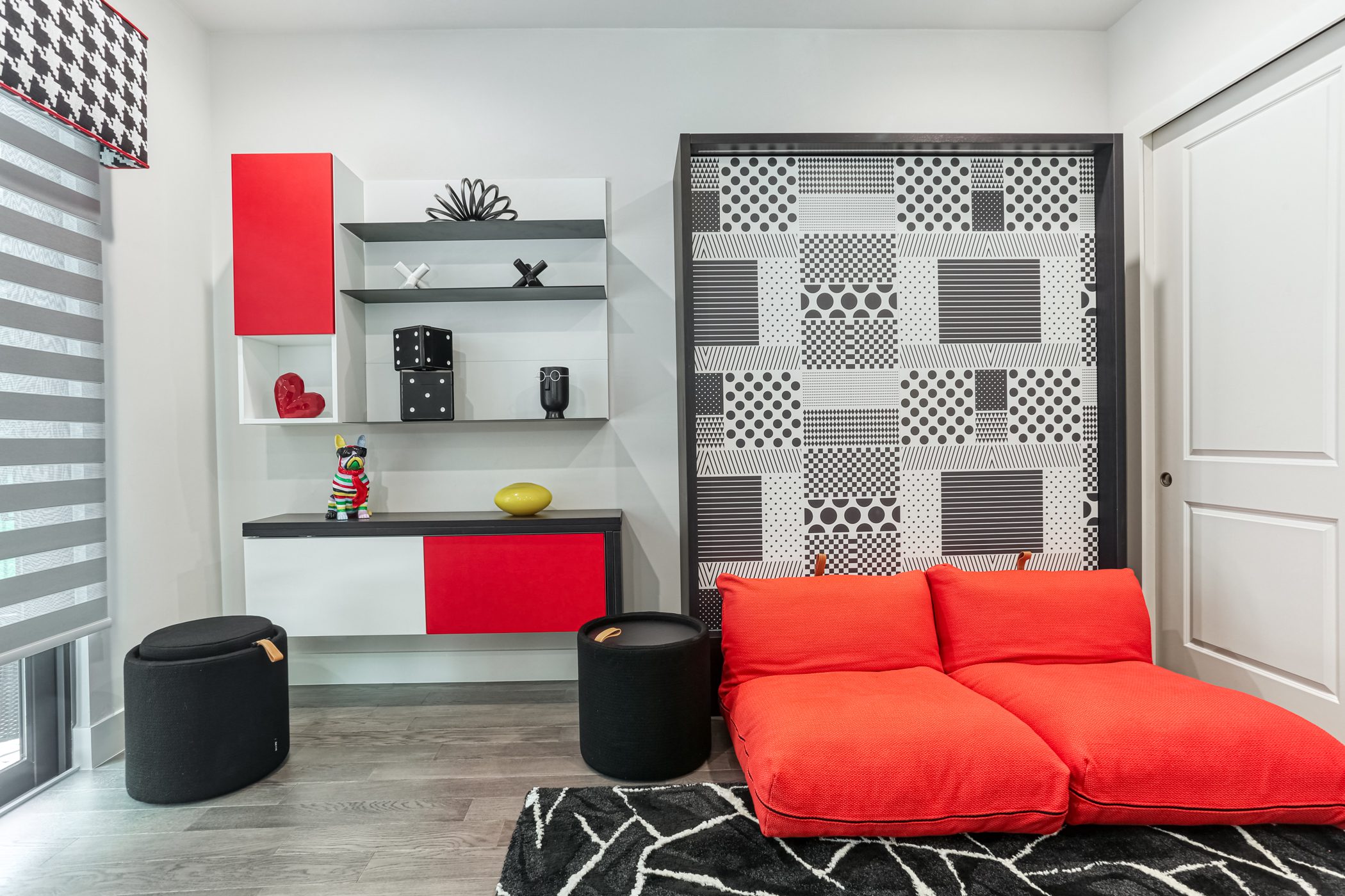 This project draws on art-inspired elegance, where bold navy accents and striking décor, like the octopus artwork.